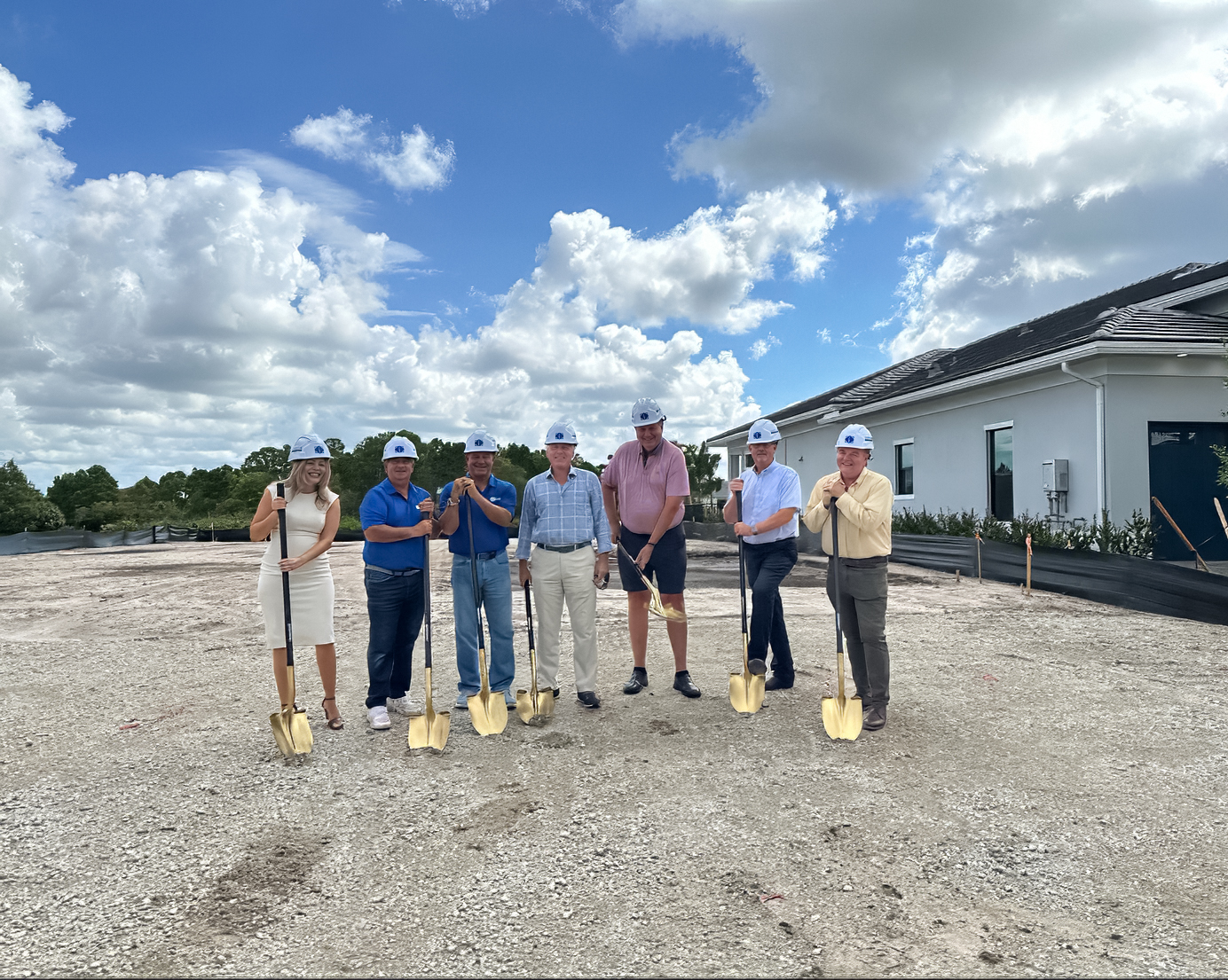 Benno “Chip” Janssen III and Kenneth Schwebel, both managing partners of Janssen Custom Home Builders, along with two of Tesoro Club’s partners, Timothy Jones and Roderick O’Connor, helped break the ground for the new home. They were joined by Beverly Stacey, Sales Operations Manager for Tesoro Club; Mark Durno, Construction Consultant for Tesoro Club; and Bobby Barfield, Tesoro Club Broker.
