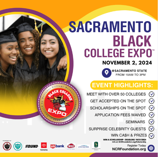 SACRAMENTO, CA, UNITED STATES, November 1, 2024 /EINPresswire.com/ -- National College Resources Foundation (NCRF) is hosting the 5th Annual Sacramento College Expo™ on Saturday, November 2nd, at California State University, Sacramento, 6000 J Street, Sacramento, CA 95819, from 10:00 a.m. to 3:00 p.m. This year’s expo is presented in partnership with California State University, Sacramento (Sacramento State).The Sacramento College Expo™ offers an ideal platform for information and connections to college and careers for high school students, adult students and college students looking to transfer to four-year institutions. With over 50 colleges in attendance, including several Historically Black Colleges and Universities (HBCUs) and other institutions of higher learning, attendees will be able to explore multiple pathways for their future. Additionally, select colleges in attendance will generously waive application fees, offer scholarships, and some may even extend on-the-spot acceptances!