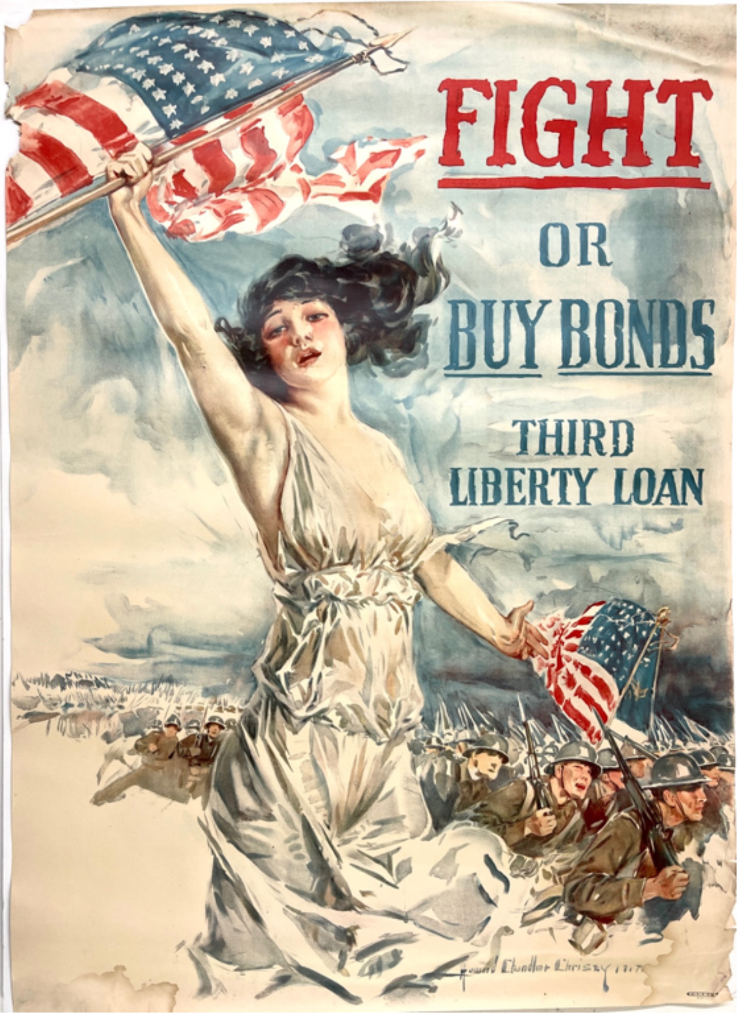 The auction will include about 20 antique World War I posters, in varying degrees of condition, like this one shown. Minimum bid: $1.
