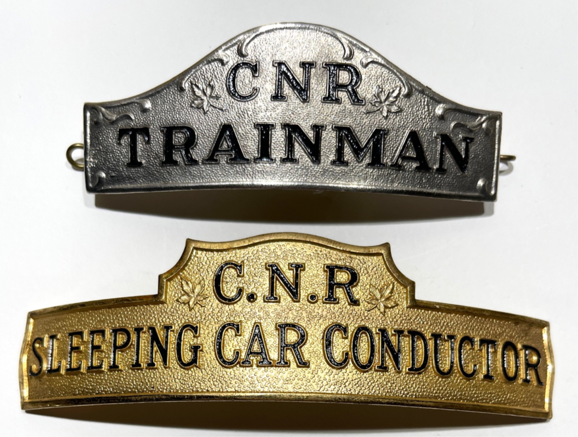 The collection of railway and trolley items will include this lot of two metal Canadian National Railway hat badges. Minimum bid: $1.