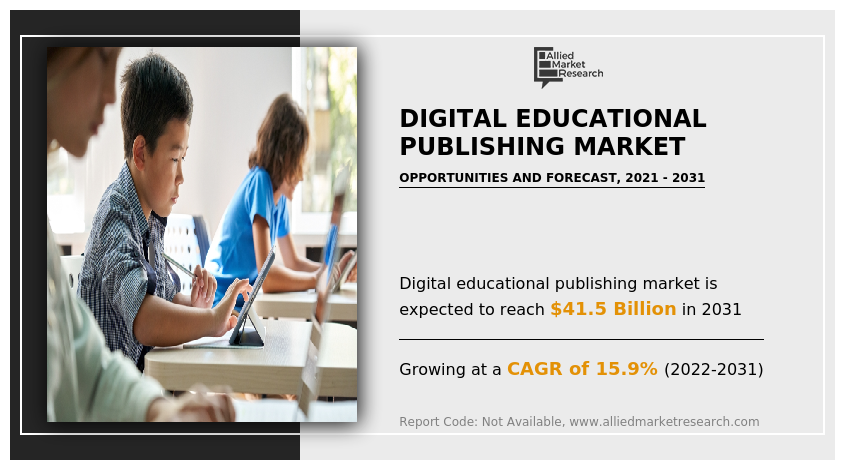 WILMINGTON, NEW CASTLE, DE, UNITED STATES, November 4, 2024 /EINPresswire.com/ -- The ๐๐ข๐ ๐ข๐ญ๐๐ฅ ๐๐๐ฎ๐๐๐ญ๐ข๐จ๐ง๐๐ฅ ๐๐ฎ๐๐ฅ๐ข๐ฌ๐ก๐ข๐ง๐ ๐๐๐ซ๐ค๐๐ญ report provides an extensive analysis of changing market dynamics, major segments, value chain, competitive scenario, and regional landscape. This research offers a valuable guidance to leading players, investors, shareholders, and startups in devising strategies for the sustainable growth and gaining competitive edge in the market. The global digital educational publishing market was valued at $9.9 billion in 2021, and is projected to reach $41.5 billion by 2031, growing at a CAGR of 15.9% from 2022 to 2031.๐๐จ๐ฐ๐ง๐ฅ๐จ๐๐ ๐๐๐ฆ๐ฉ๐ฅ๐ ๐๐๐ฉ๐จ๐ซ๐ญ (๐๐๐ญ ๐ ๐ฎ๐ฅ๐ฅ ๐๐ง๐ฌ๐ข๐ ๐ก๐ญ๐ฌ ๐ข๐ง ๐๐๐ - 270 ๐๐๐ ๐๐ฌ) ๐๐ญ: https://www.alliedmarketresearch.com/request-sample/A31727