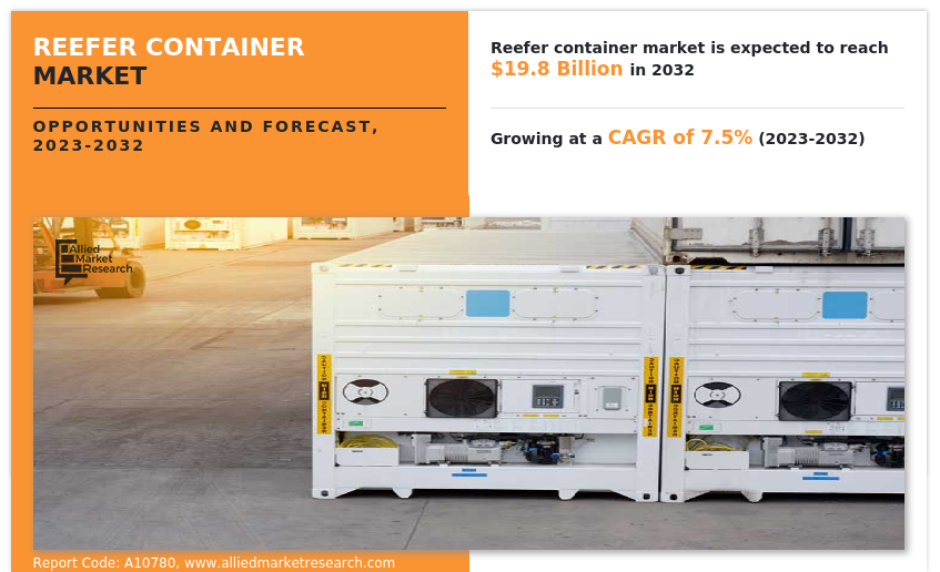 WILMINGTON, NEW CASTLE, DE, UNITED STATES, November 4, 2024 /EINPresswire.com/ -- The global 𝐑𝐞𝐞𝐟𝐞𝐫 𝐂𝐨𝐧𝐭𝐚𝐢𝐧𝐞𝐫 𝐌𝐚𝐫𝐤𝐞𝐭 size was valued at $9.7 billion in 2022, and is projected to reach $19.8 billion by 2032, growing at a CAGR of 7.5% from 2023 to 2032. A reefer container, also known as a refrigerated container, is a type of shipping container used to transport temperature-sensitive items such as food, pharmaceuticals, and chemicals. It enables the safe transportation of temperature sensitive goods when the goods are transported to a great distance. This is possible, as the containers are outfitted with sophisticated cooling and heating systems to keep the proper temperature range constant throughout the travel which allows the goods to be transported in secure and desirable condition. Reefer containers also allow accurate temperature control, which is critical for maintaining the quality and freshness of perishable commodities. Furthermore, these containers provide airtight and safe storage, shielding the cargo from outside elements and any contamination.𝐃𝐨𝐰𝐧𝐥𝐨𝐚𝐝 𝐒𝐚𝐦𝐩𝐥𝐞 𝐑𝐞𝐩𝐨𝐫𝐭 (𝐆𝐞𝐭 𝐅𝐮𝐥𝐥 𝐈𝐧𝐬𝐢𝐠𝐡𝐭𝐬 𝐢𝐧 𝐏𝐃𝐅 - 250 𝐏𝐚𝐠𝐞𝐬) 𝐚𝐭: https://www.alliedmarketresearch.com/request-sample/A10780