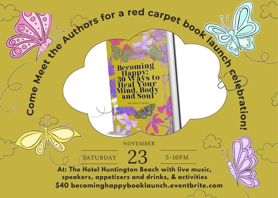 To celebrate the launch of "Becoming Happy," a beautiful red carpet book launch party will be held at the Hotel Huntington Beach on November 23, 2024, from 5-10pm. Attendees will have the opportunity to meet the authors and get their books signed. Tickets for the event can be purchased at becominghappybooklaunch.eventbrite.com for $40.