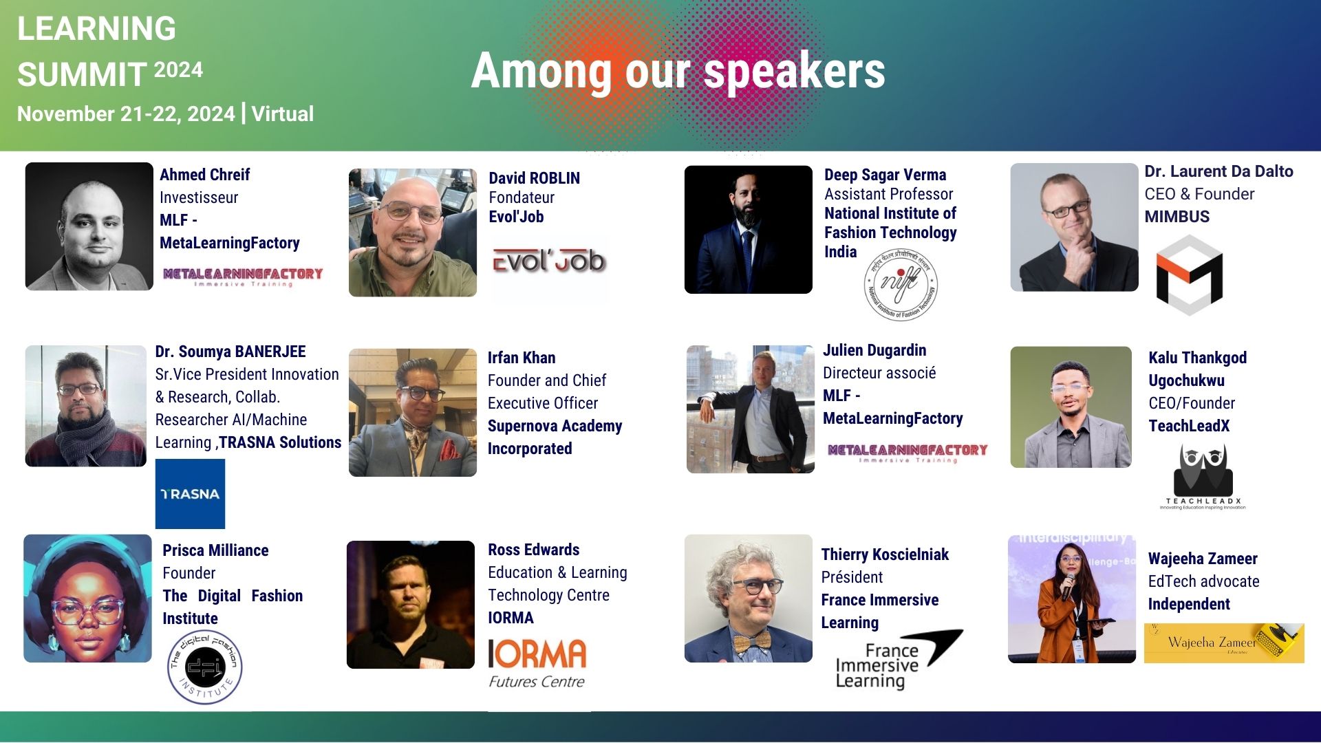 Le Sommet de l'apprentissage immersif est une occasion unique d'apprendre, de collaborer et de réimaginer des expériences éducatives pour la nouvelle génération. Les participants bénéficieront des connaissances des leaders de l'industrie, expérimenteront des outils et des méthodologies de pointe et rejoindront une communauté dédiée à la construction d'un avenir plus lumineux et plus inclusif.