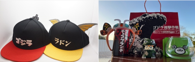 An extensive range of Godzilla merchandise is also on offer at Godzilla Interception Operation, many of which are original designs found exclusively at Nijigen no Mori. Visitors will also find plenty of souvenirs, including drinking glasses, figurines, and snacks.