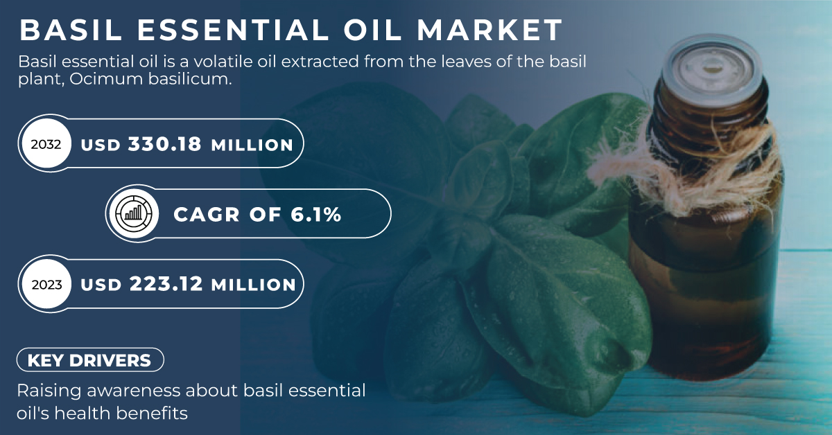 Basil Essential Oil Market to reach USD 330.18 million by 2032 Owing to Increased Demand in the Wellness Industry