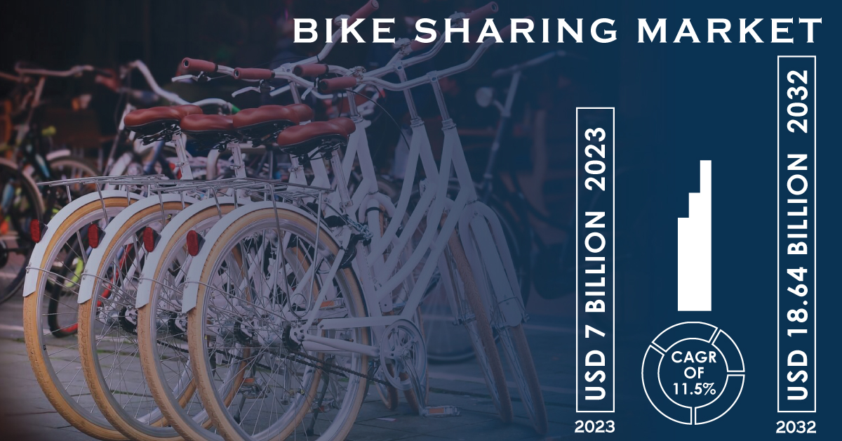 The Bike Sharing Market was valued at USD 7 billion in 2023 and is projected to reach USD 18.64 billion by 2032, exhibiting a CAGR of 11.5% over the forecast period from 2024 to 2032.