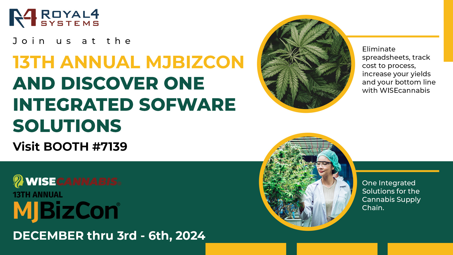 LONG BEACH, CA, UNITED STATES, November 15, 2024 /EINPresswire.com/ -- Royal 4 Systems is pleased to announce its participation in the 13th annual MJBizCon, the world's largest cannabis business conference, which will take place December 4-6, 2024, at the Las Vegas Convention Center. MJBizCon 2024 will host over 1,500 exhibitors and gather industry leaders, innovators, and experts from the cannabis and hemp sectors to discuss emerging trends, groundbreaking technologies, and strategies shaping the future of the industry.As a longstanding supporter and exhibitor at MJBizCon, Royal 4 Systems is committed to empowering cannabis businesses through its specialized supply chain software, WISEcannabis. Designed to address the unique challenges of the cannabis industry, WISEcannabis offers streamlined solutions to enhance supply chain efficiency, even as inflation and compliance requirements introduce new complexities. The software provides comprehensive visibility across the entire production cycle, from distribution and planting to harvesting, manufacturing, quality assurance, compliance, and shipping.