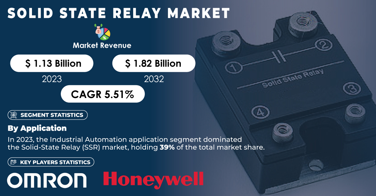 AUSTIN, TX, UNITED STATES, November 13, 2024 /EINPresswire.com/ -- Market Size & Industry InsightsAs Per the S&S Insider,“The Solid State Relay Market was valued at USD 1.13 billion in 2023 and is expected to reach USD 1.82 billion by 2032, growing at a CAGR of 5.51% over the forecast period of 2024–2032.”
