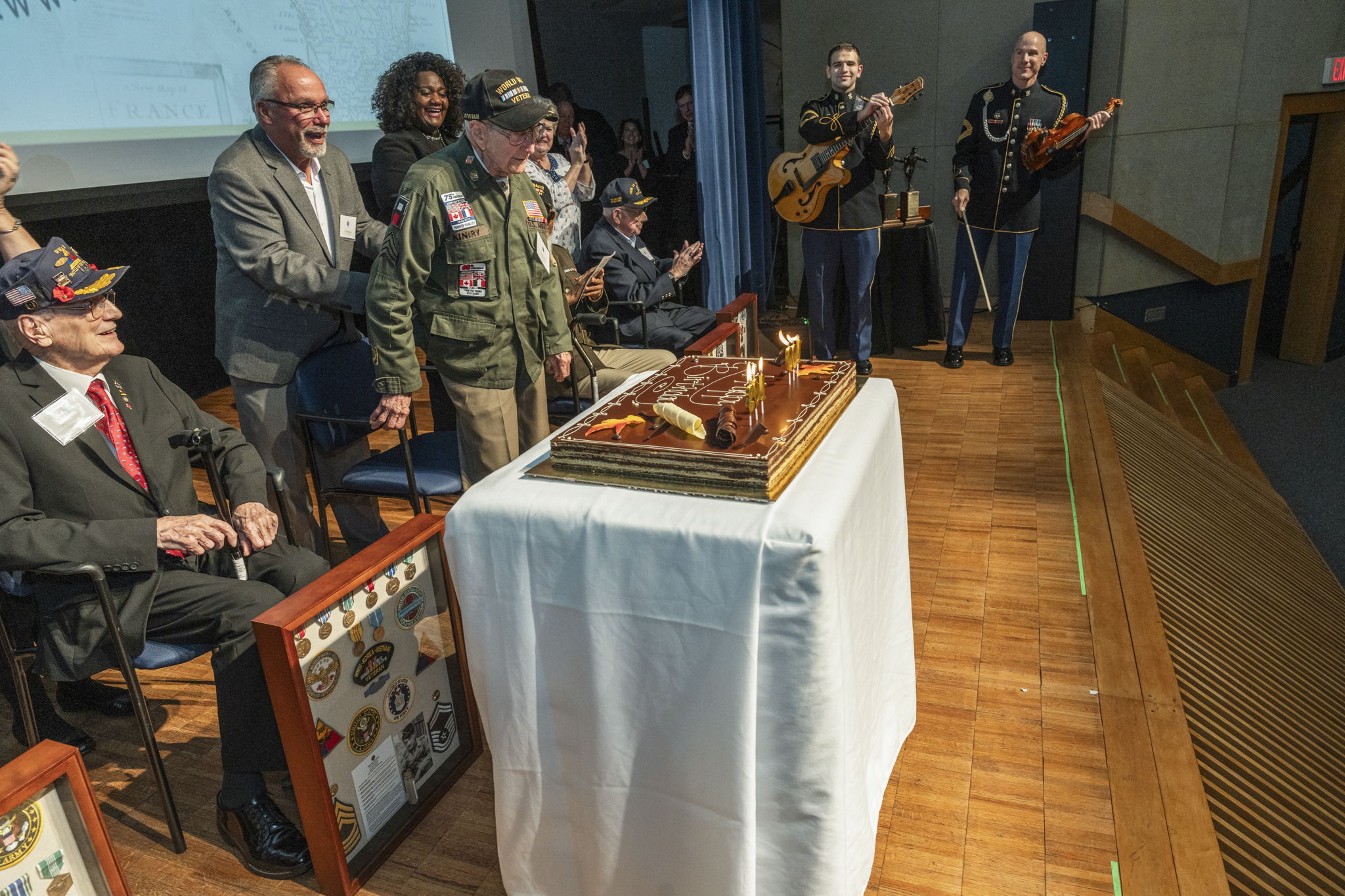 The Senator Bob Dole Leadership Award being presented to D-Day and Battle of the Bulge Veterans and Concentration Camp Liberators