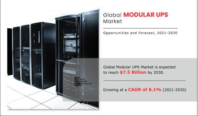 According to a new report published by Allied Market Research, The global modular UPS market size was valued at $3.5 billion in 2020, and modular UPS market forecast projected to reach $7.5 billion by 2030, with global modular UPS market forecast expected at a CAGR of 8.1% from 2021 to 2030.