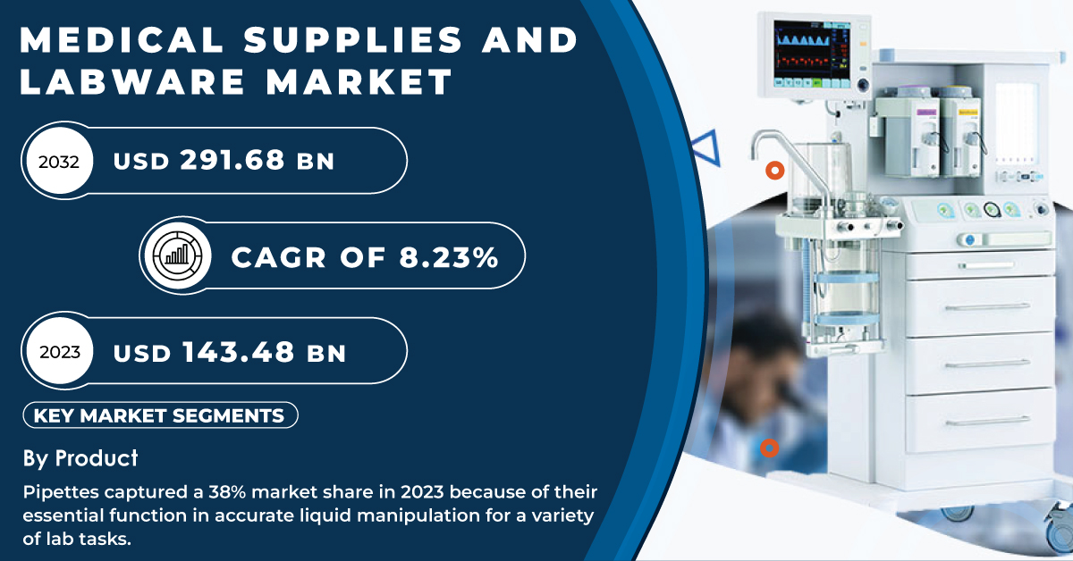 AUSTIN, TEXAS, UNITED STATES, December 2, 2024 /EINPresswire.com/ -- According to Research by SNS Insider, The Medical Supplies and Labware Market is expected to grow from USD 143.48 billion in 2023 to USD 291.68 billion by 2032, at a CAGR of 8.23% during the forecast period 2024-2032.The medical supplies and labware market is on a transformative journey, driven by advancements in healthcare, burgeoning research initiatives, and rising emphasis on sanitation and safety. The growth reflects a convergence of global healthcare needs with innovation-driven solutions, from disposable medical items to advanced diagnostic tools and cutting-edge laboratory equipment.