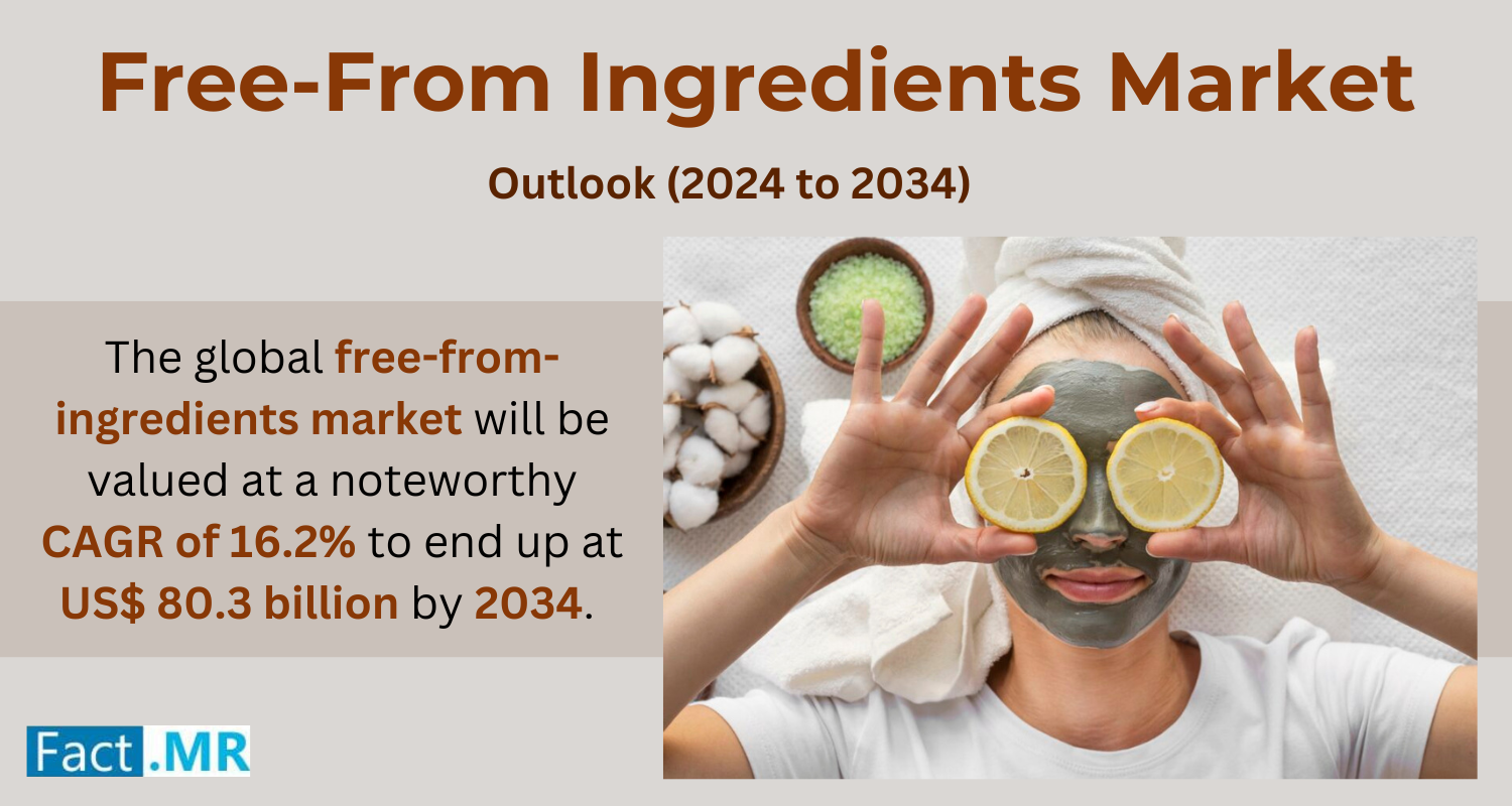ROCKVILLE, MD, UNITED STATES, December 9, 2024 /EINPresswire.com/ -- According to Fact.MR, a market research and competitive intelligence provider, the global free-from-ingredients market is estimated to reach a valuation of US$ 17.9 billion in 2024 and is expected to grow at a CAGR of 16.2% during the forecast period of 2024 to 2034.The global free-from-ingredients market is on the rise owing to the growing interest in products that promote health and also cater to special diets. Free-from ingredients are components of food and beverages, which are free from allergens, artificial items, gluten, dairy, GMOs, etc.; these are meant for people who have specific diets. Food safety and the use of clean labels have also enhanced the demand for free products as people are more interested in ingredient lists and more natural food alternatives.