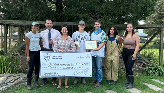 TIVERTON, RI, UNITED STATES, December 12, 2024 /EINPresswire.com/ -- The Hayden Foundation is proud to announce a $15,000 donation to West Place Animal Sanctuary, a non-profit organization dedicated to providing lifelong care for farm animals rescued from abuse, neglect, and cruelty. This donation will directly support the sanctuary’s Educational Internship Programs, offering hands-on learning opportunities to high school and college students interested in animal care, wildlife rehabilitation, and humane education.Since 2007, West Place Animal Sanctuary has served as a safe haven for farm animals and as a licensed wildlife rehabilitation center. The sanctuary is also the lost dog shelter for Little Compton, making it a vital resource in the local community. Its Educational Internship Programs provide students with real-world experience in animal care, veterinary services, and farm management, while fostering compassion and responsibility.