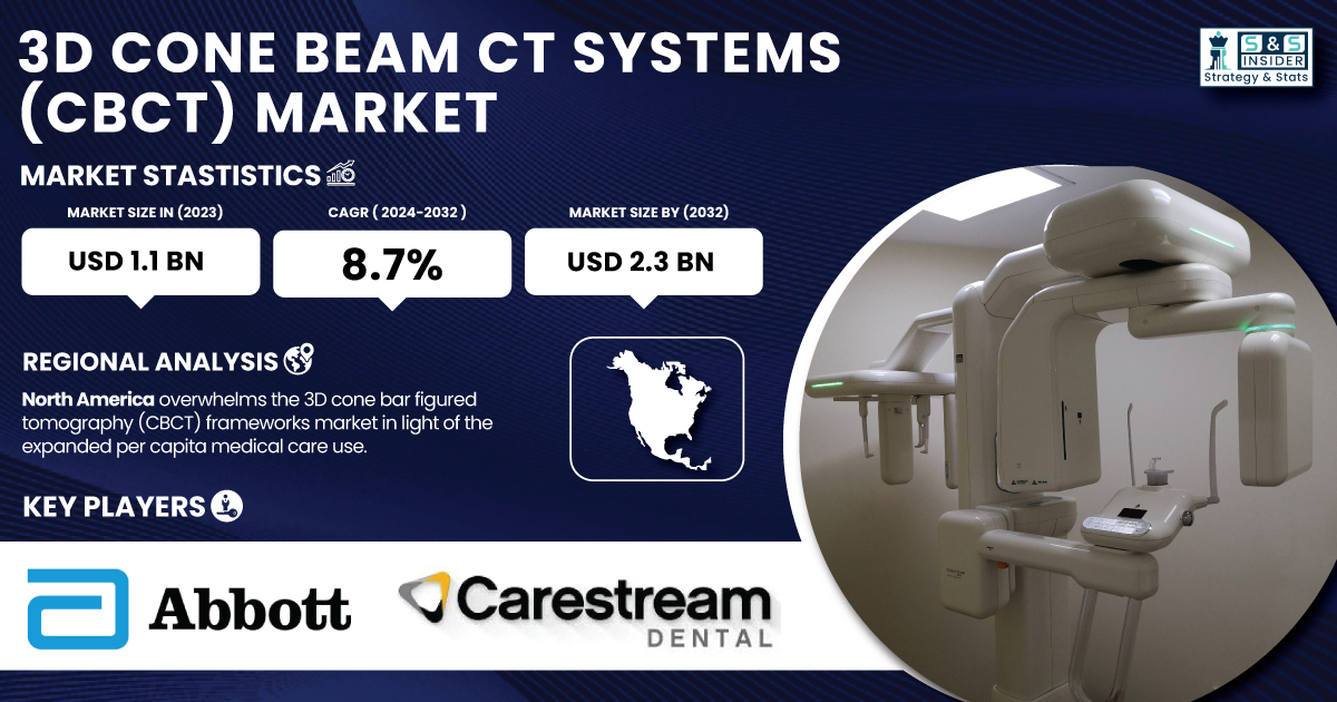 AUSTIN, TX, UNITED STATES, December 13, 2024 /EINPresswire.com/ --According to SNS Insider, the 3D Cone Beam CT Systems (CBCT) Market was valued at USD 1.1 billion in 2023 and is projected to reach USD 2.3 billion by 2032, growing with the fastest CAGR of 8.7% from 2024 to 2032.