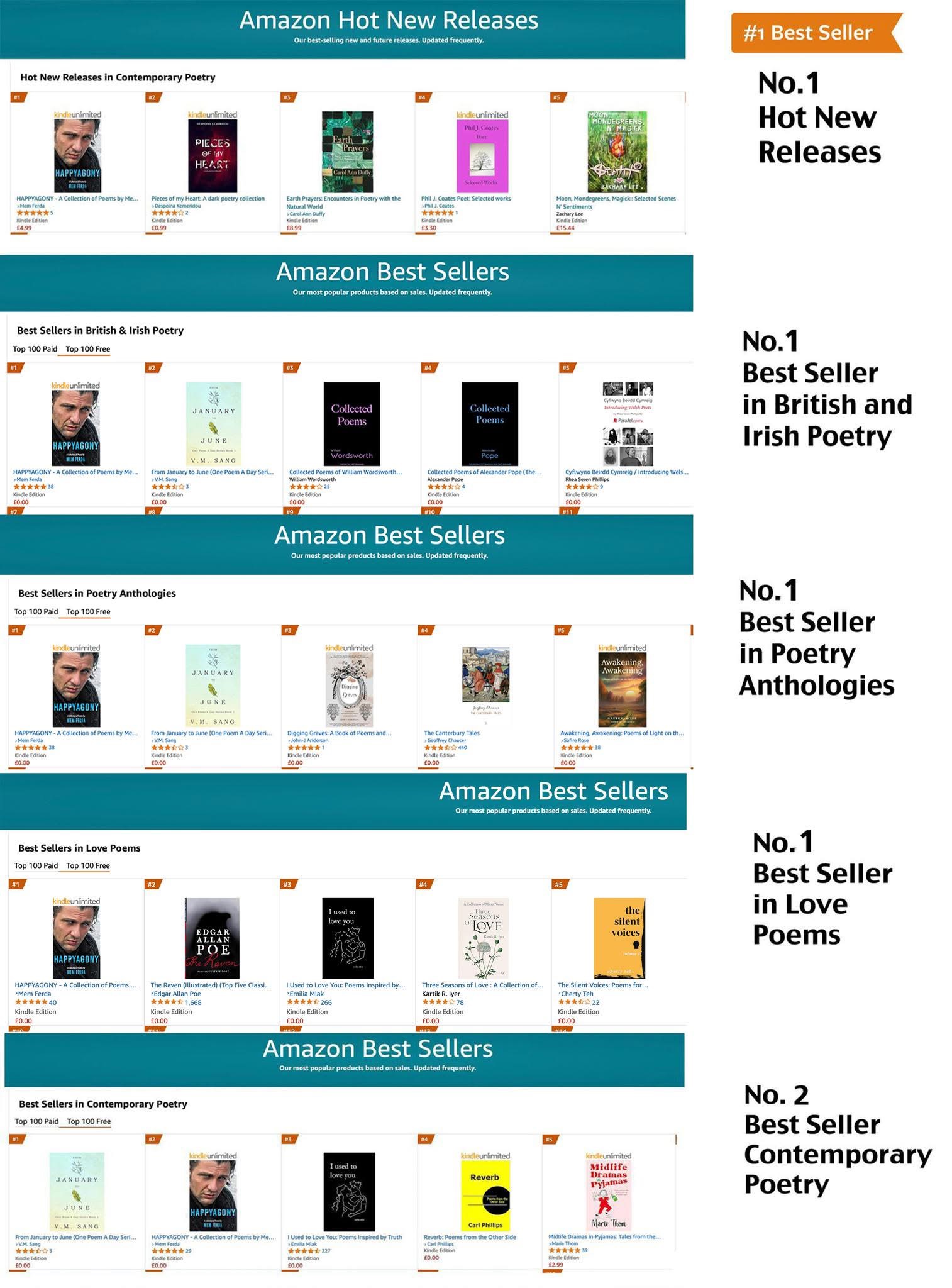 ‘HAPPYAGONY—A Collection of Poems by Mem Ferda’ is now available on Amazon in paperback, hardback, Kindle, and audiobook formats. In its first week of release, it shot to the Number One position in Amazon's Hot New Releases. It is also available worldwide at Major bookstores, i.e., Waterstones, WHSmith, Foyles, and Barnes & Noble.