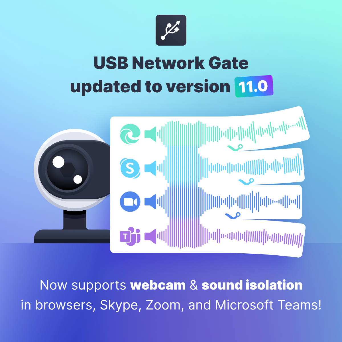 The latest version of USB Network Gate 11.0 introduces webcam and sound isolation features for Microsoft Media Foundation applications.