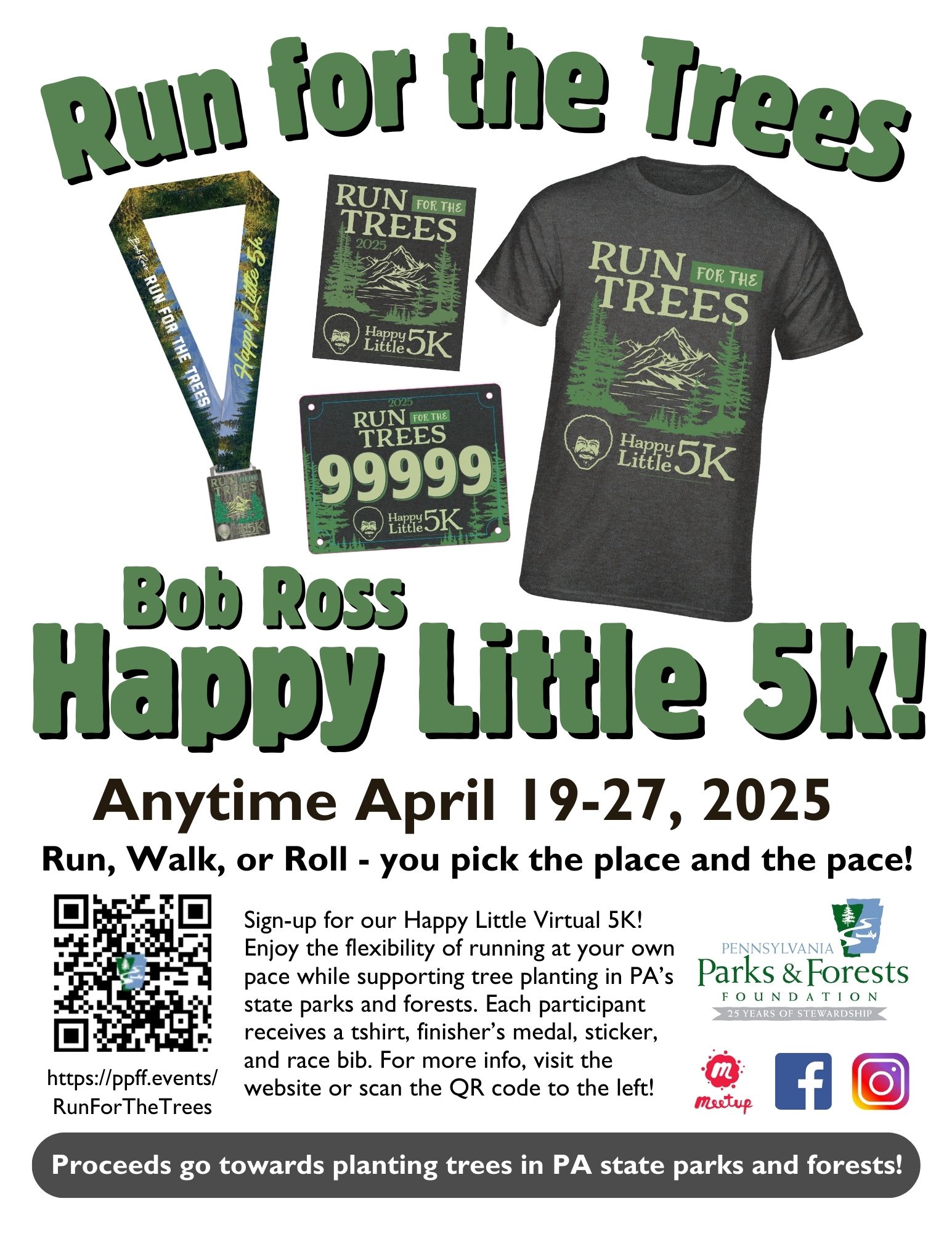 CAMP HILL, PA, UNITED STATES, December 17, 2024 /EINPresswire.com/ -- The Pennsylvania Parks and Forests Foundation (PPFF) is excited to announce its participation in the Run for the Trees - Happy Little 5K, inspired by the beloved artist Bob Ross. This virtual event invites participants to complete a 5K outdoors anytime between April 19-27, 2025, coinciding with Earth Day and Arbor Day. Proceeds from the registration go into helping fund tree planting in Pennsylvania’s state parks and forests.