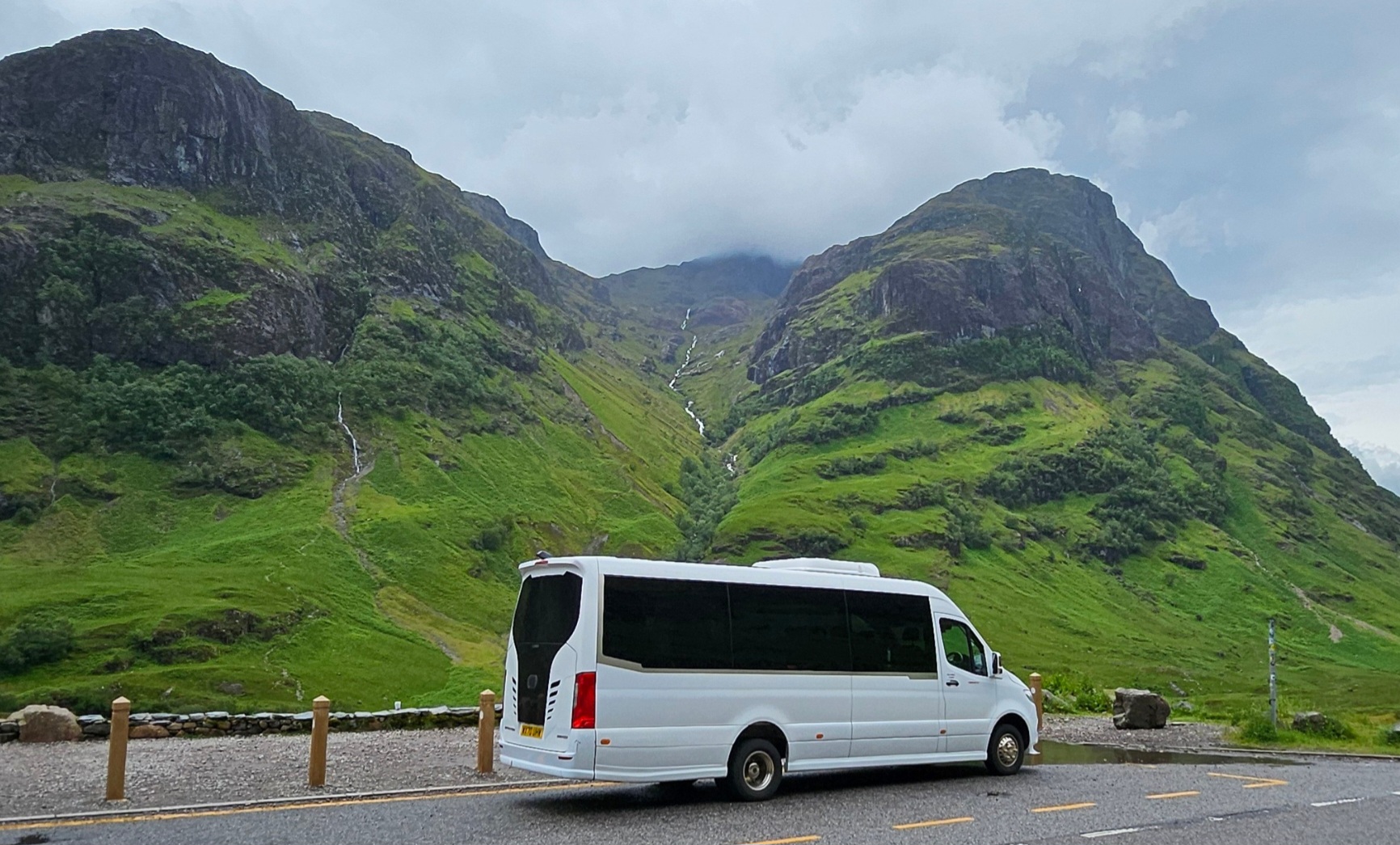 New Mercedes mini-coaches offer comfort and style for unforgettable private tours of Scotland with Heartland Travel.