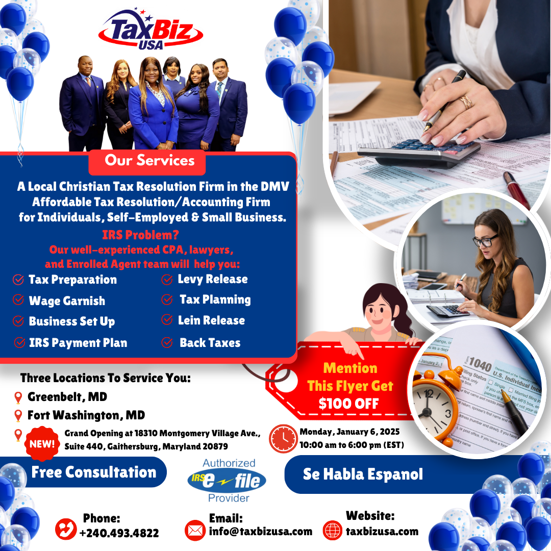 TaxBiz USA is thrilled to announce the grand opening of its new location in Gaithersburg, Maryland, on January 6, 2025!