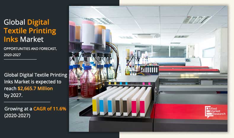 The global digital textile printing inks market size is expected to reach $2,665.7 million by 2027, registering a CAGR of 11.6% from 2020 to 2027