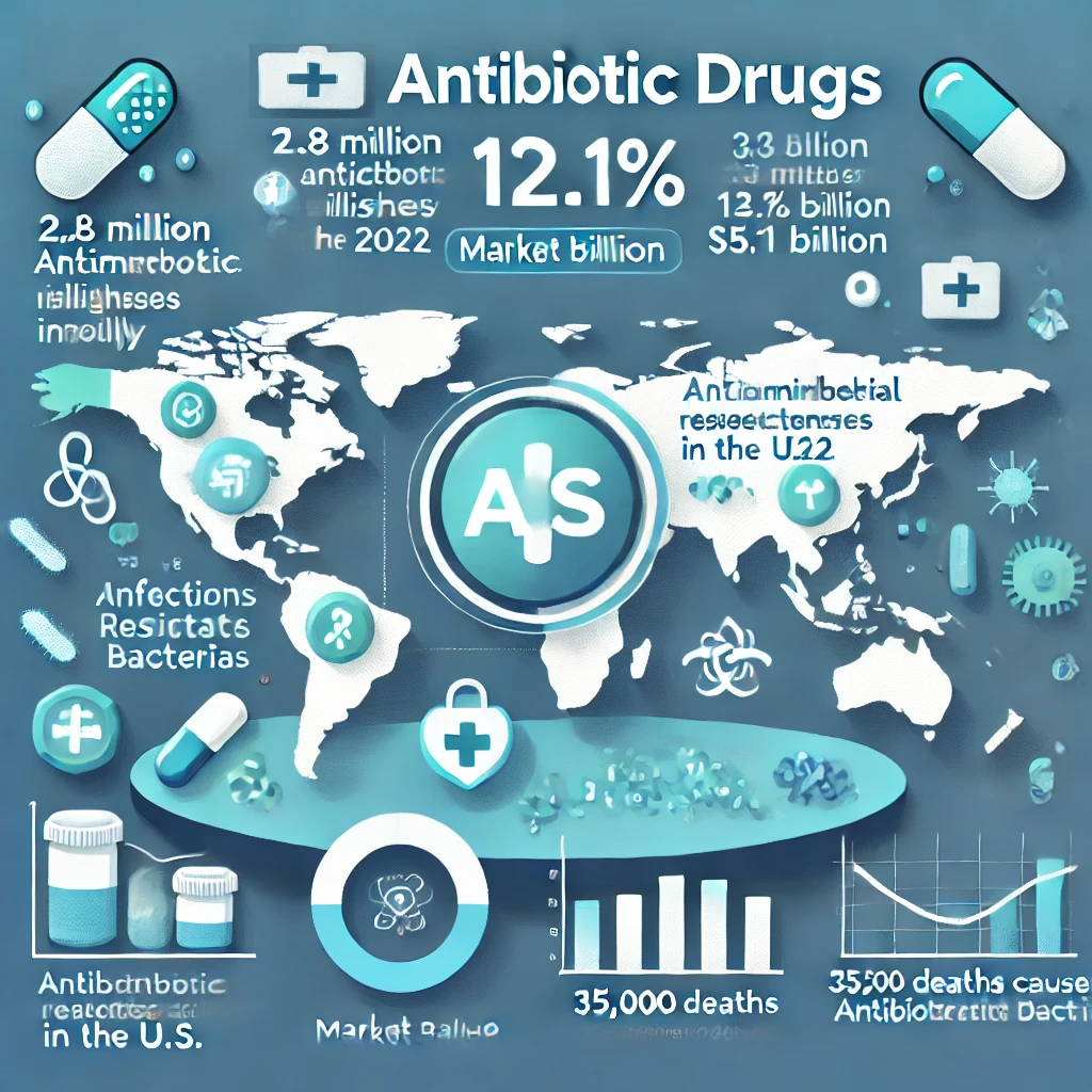 The U.S. leads the antibiotic drugs market with 12.1% share, driven by rising infections, antibiotic demand, and robust government initiatives.