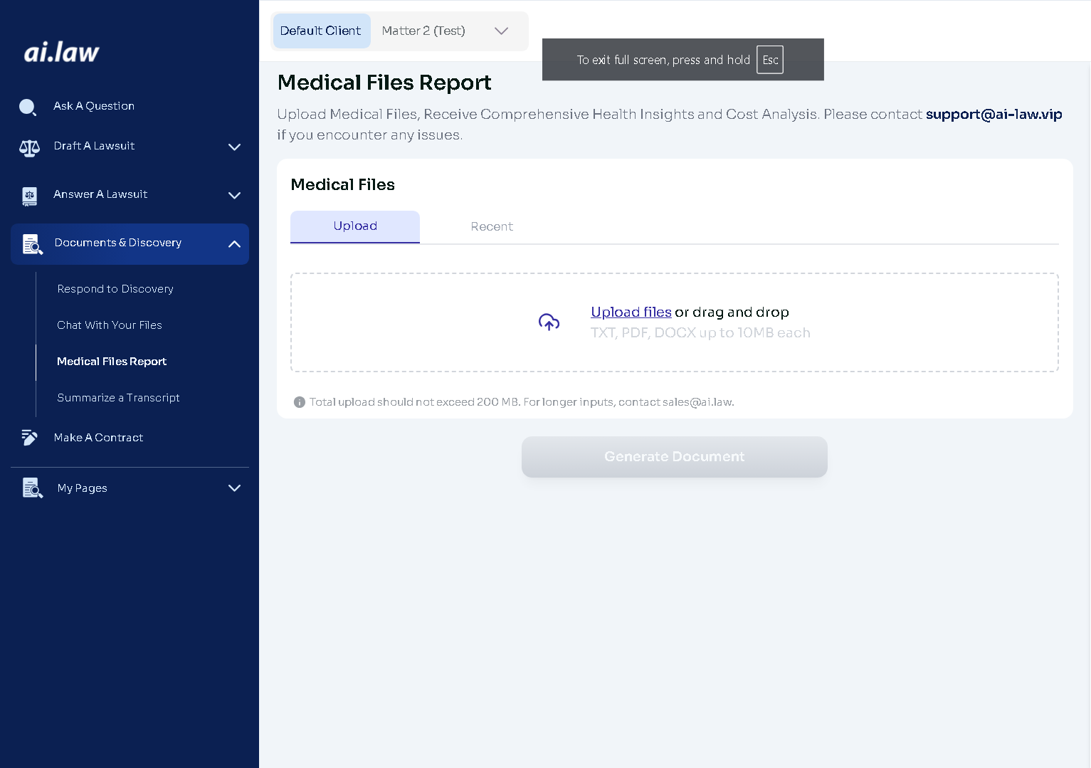 AI.law now automates the process of generating medical summaries, timelines, and cost breakdowns from medical records, police reports, and insurance documents.