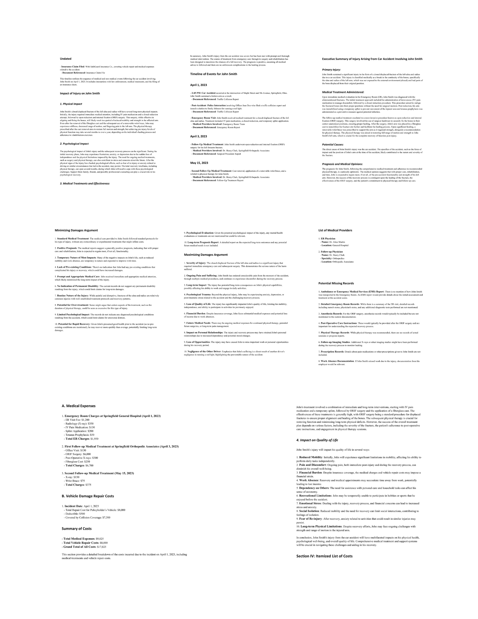 - Cost Breakdown: Lawyers can quickly access a comprehensive cost breakdown, including medical expenses, treatment costs, and insurance information.
