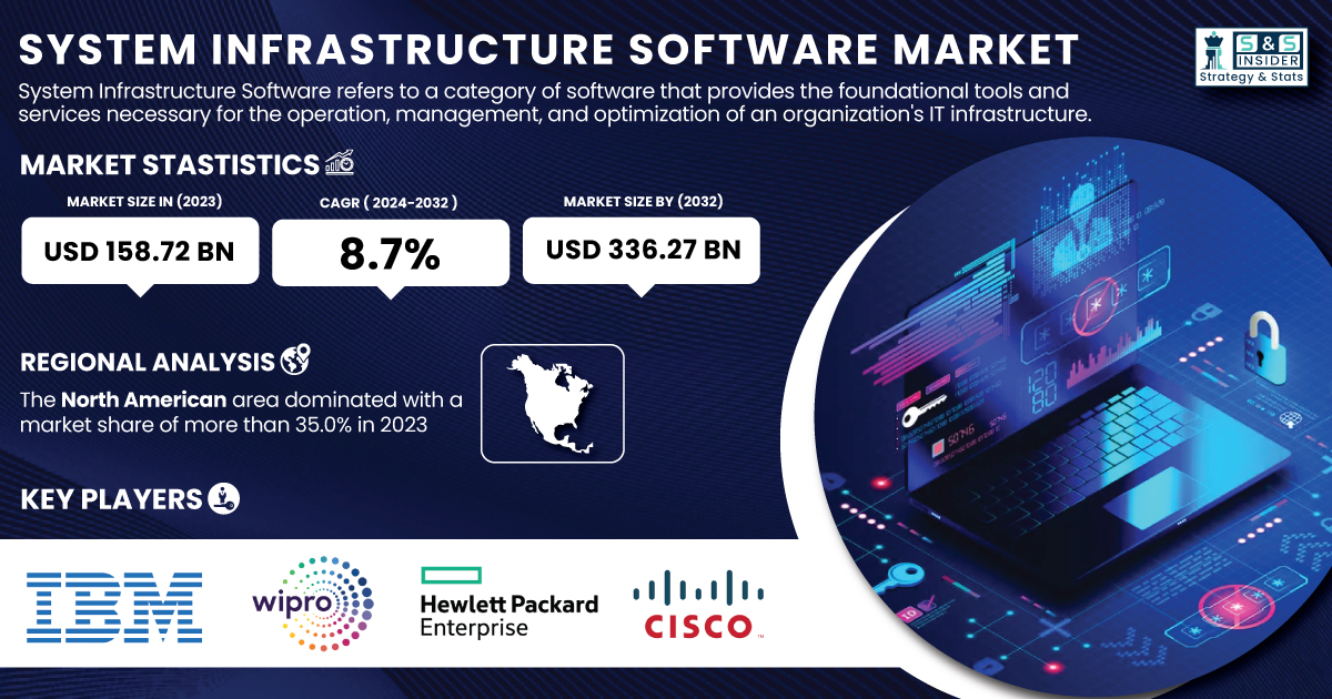 AUSTIN, TX, UNITED STATES, January 3, 2025 /EINPresswire.com/ -- The SNS Insider report indicates that the System Infrastructure Software Market size was valued at USD 158.7 billion in 2023 and is expected to grow to USD 336.2 billion by 2032, growing at a CAGR of 8.7% over the forecast period of 2024-2032.Get Sample Copy of Report: https://www.snsinsider.com/sample-request/3310