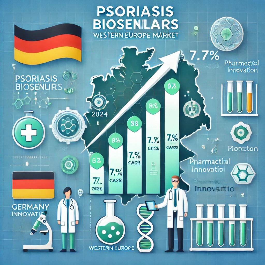 Germany’s psoriasis biosimilars market, growing at a 7.7% CAGR (2024-2034), leads in Western Europe. Strong R&D, strict regulations, and expert healthcare.
