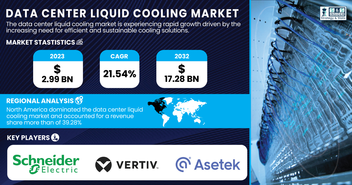 AUSTIN, TX, UNITED STATES, January 7, 2025 /EINPresswire.com/ -- The Data Center Liquid Cooling Market was valued at USD 2.99 Billion in 2023 and is projected to reach USD 17.28 Billion by 2032, growing at a compound annual growth rate (CAGR) of 21.54% from 2024 to 2032.Data Center Liquid Cooling Market Grows with Demand for Sustainable, Energy-Efficient Solutions