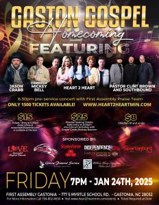 TICKETS ARE AVAILABLE FOR THE GASTON GOSPEL HOMECOMING - JANUARY 24th