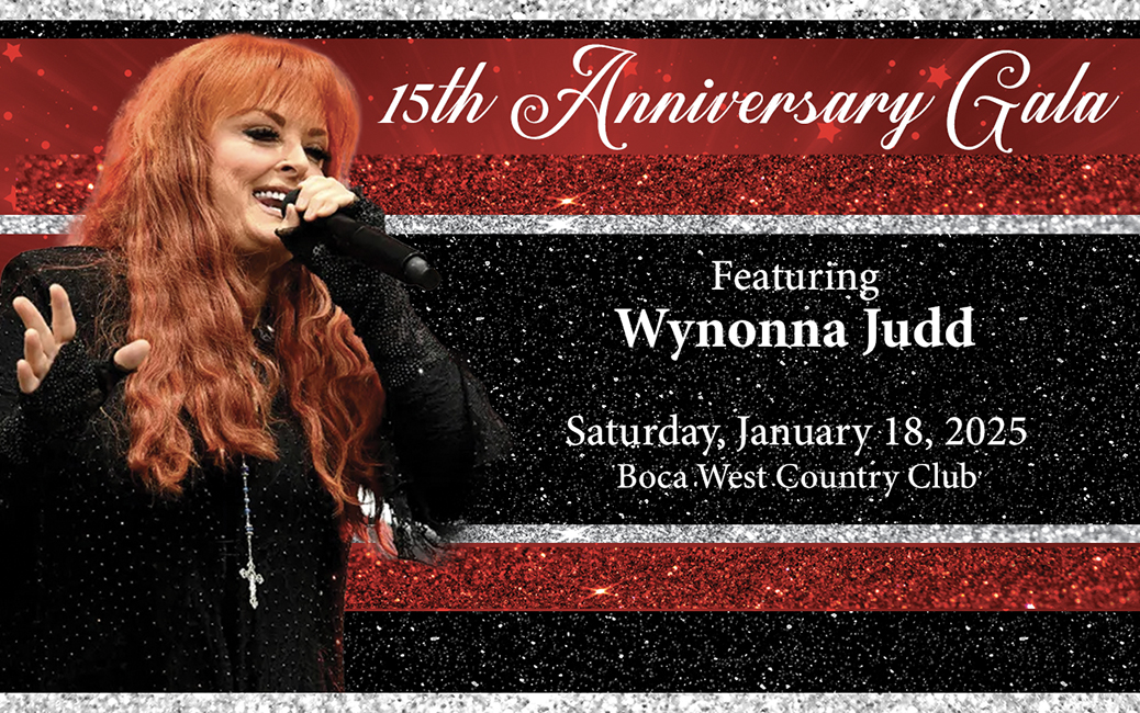 Join us on Jan. 18, 2025, for Boca West Children’s Foundation’s 15th Anniversary Gala featuring Wynonna Judd, honorees and an exclusive auction.