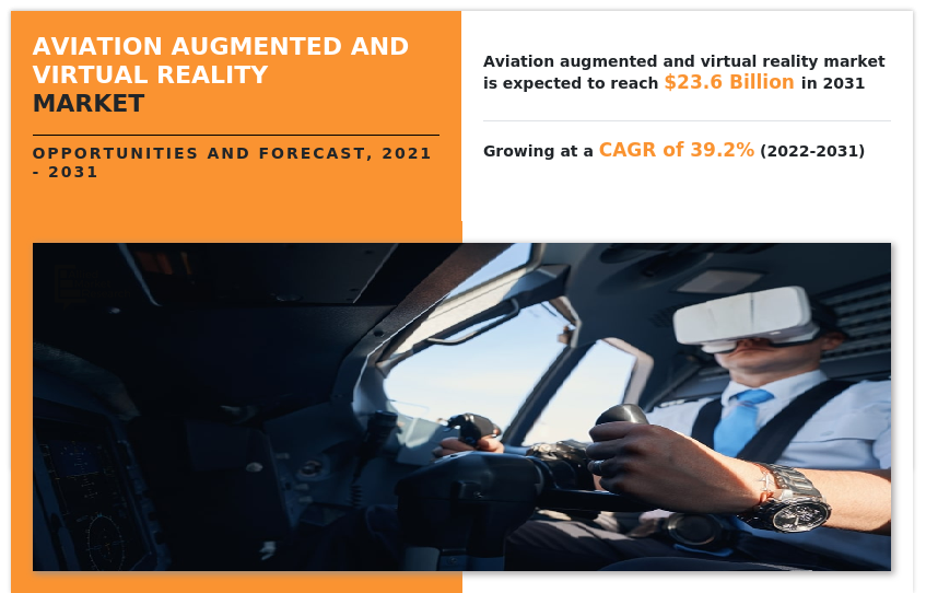 Aviation augmented & virtual reality market was valued at $0.91 billion in 2021, is projected to reach $23.6 Bn by 2031, grow at a CAGR of 39.2% from 2022-2031.