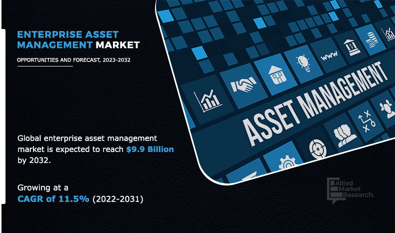 WILMINGTON, DE, UNITED STATES, January 9, 2025 /EINPresswire.com/ -- According to a new report published by Allied Market Research, The enterprise asset management market was valued at $3.4 billion in 2021, and is estimated to reach $9.9 billion by 2031, growing at a CAGR of 11.5% from 2022 to 2031.Enterprise asset management (EAM) involves the management of the maintenance of physical assets of an organization throughout each asset's lifecycle. EAM is used to plan, optimize, execute, and track the needed maintenance activities with the associated priorities, skills, materials, tools, and information. The demand for the enterprise asset management market is growing at a significant rate of enterprises adopting EAM software to optimize the quality and utilization of assets throughout their lifecycle, and increase productive uptime and reduce operational costs.