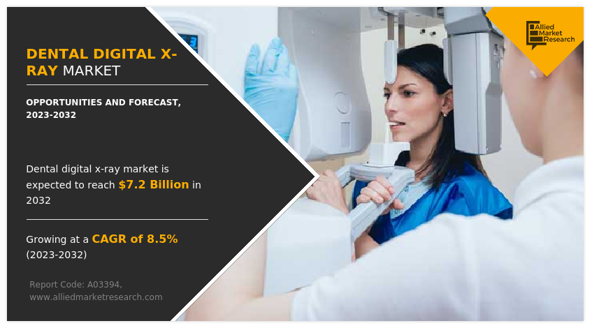 PORTLAND, OR, UNITED STATES, January 9, 2025 /EINPresswire.com/ -- The global dental digital X-ray market is experiencing remarkable growth, with a valuation of $3.2 billion in 2022 and a projected increase to $7.2 billion by 2032, reflecting a compound annual growth rate (CAGR) of 8.5% from 2023 to 2032. This expansion is primarily fueled by advancements in technology, heightened awareness regarding oral health, and an increasing demand for early diagnosis and cosmetic dentistry.