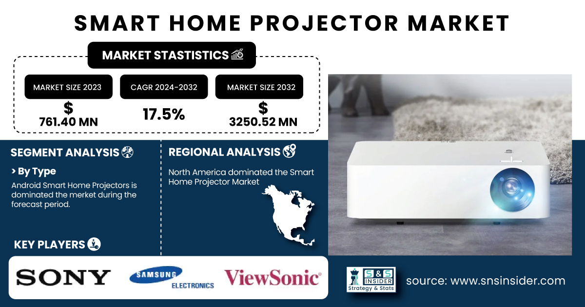 AUSTIN, TX, UNITED STATES, January 17, 2025 /EINPresswire.com/ -- Market Size & Industry InsightsAs Per the SNS Insider,“The Smart Home Projector Market size was USD 761.40 million in 2023 and is expected to reach USD 3250.52 million by 2032, growing at a CAGR of 17.5% over the forecast period of 2024-2032.”