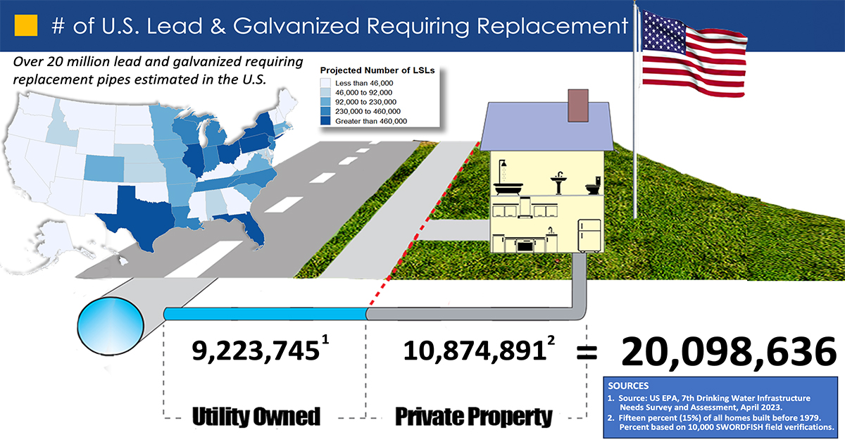 U.S. water systems have an estimated 20 million lead water service lines and galvanized pipe requiring replacement, double the amount of earlier government estimates.