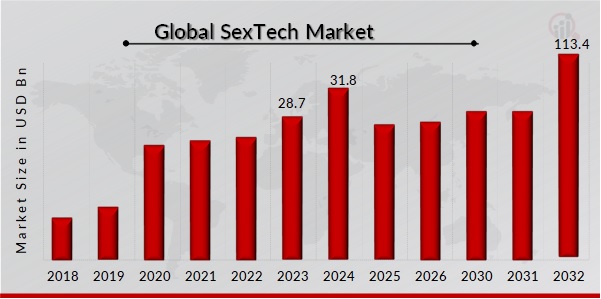 US, NY, UNITED STATES, January 20, 2025 /EINPresswire.com/ -- Market Research Future Latest Industry Insights on โSexTech Market Research and Growth Analysis, By Product (Bluetooth-Enabled Sex Toys, Multiple Erogenous Zone Massager, VR Porn, Sex Robots, Sexual Wellness Platform, and Others), By Gender (Male, and Female), By Distribution Channel (E-Commerce, Specialty Stores, and Direct Sales) And by Region โ Industry Forecast 2025-2032โThe SexTech Market share valued at USD 28.7 billion in 2023. The industry is projected to drive growth from USD 31.8 billion in 2024 to USD 113.4 billion by 2032, exhibiting a CAGR of 17.21% during the forecast period 2024 - 2032.