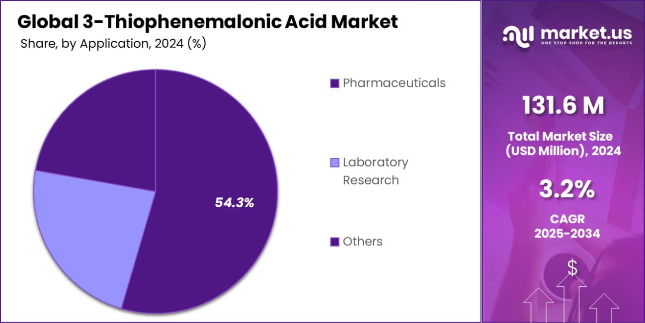 In 2024, Laboratory Research held a 45.7% share of the market in the same year. This segment benefits from the growing employment of 3-Thiophenemalonic Acid across both academic and commercial research and development settings. Known for its reliability and purity, 3-thiophene malonic Acid remains a favored choice for the synthesis of innovative chemical structures and the execution of comprehensive analyses, thereby securing its status as a fundamental element in laboratory experiments globally.