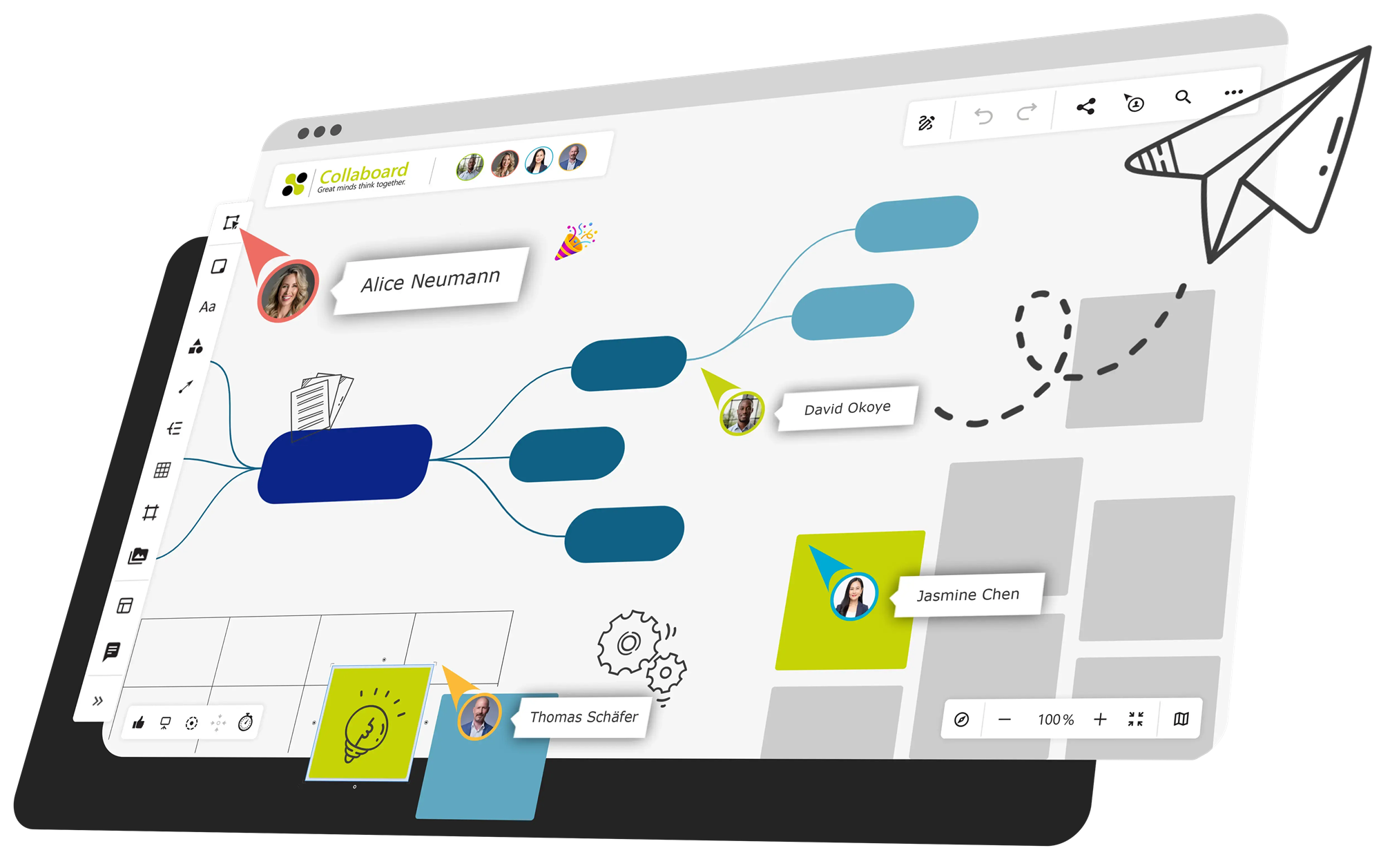 Collaboard zählt zu den sichersten und innovativsten Online-Whiteboard-Lösungen auf dem Markt. Teams weltweit nutzen die Plattform für Echtzeit-Kollaboration, kreative Ideensammlungen und visuelle Projektplanung. Besonders geschätzt wird Collaboard in Branchen mit hohen Datenschutzanforderungen, darunter öffentliche Verwaltungen, Unternehmen mit sensiblen Daten und Bildungseinrichtungen.