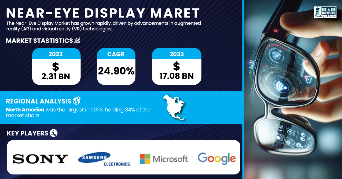 AUSTIN, TX, UNITED STATES, January 24, 2025 /EINPresswire.com/ -- Market Size & Industry InsightsAs Per the SNS Insider,“The Near-Eye Display Market size was USD 2.31 Billion in 2023 and is expected to reach USD 17.08 Billion by 2032, growing at a CAGR of 24.90% over the forecast period of 2024-2032.”