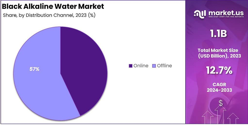 In 2023, Offline held a dominant position in the Black Alkaline Water Market by distribution channel, capturing over a 57% share. Consumers continue to favor purchasing black alkaline water through offline channels, such as supermarkets, hypermarkets, and specialty stores, where they can physically inspect the product before making a purchase.
