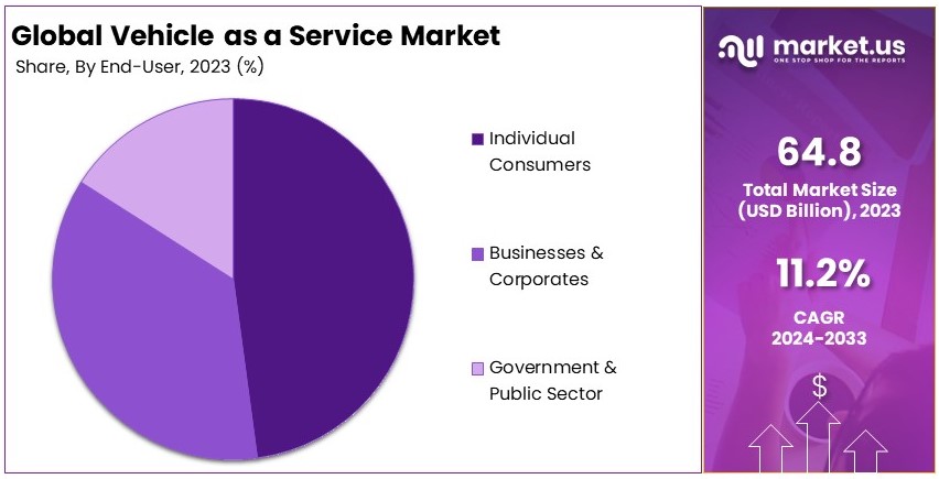 Individual Consumers dominate the End-User segment in the Vehicle as a Service (VaaS) Market, driven by the increasing preference for flexible and cost-effective personal mobility solutions. This demographic values the convenience and scalability offered by VaaS models, which allow them to access a variety of vehicles without the commitments of ownership. The rise of subscription-based services and ride-hailing platforms caters to the needs of tech-savvy consumers who seek on-demand transportation options that align with their dynamic lifestyles. Additionally, Businesses/Corporates and Government & Public Sector segments are significant, utilizing VaaS for efficient fleet management and public transportation solutions, respectively. These segments contribute to the overall market growth by leveraging VaaS to enhance operational efficiency and reduce transportation costs.