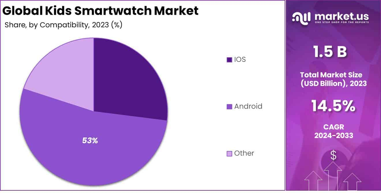 ~~ Android-based smartwatches held a 53% market share in 2023, favored for their affordability and widespread adoption in price-sensitive segments.