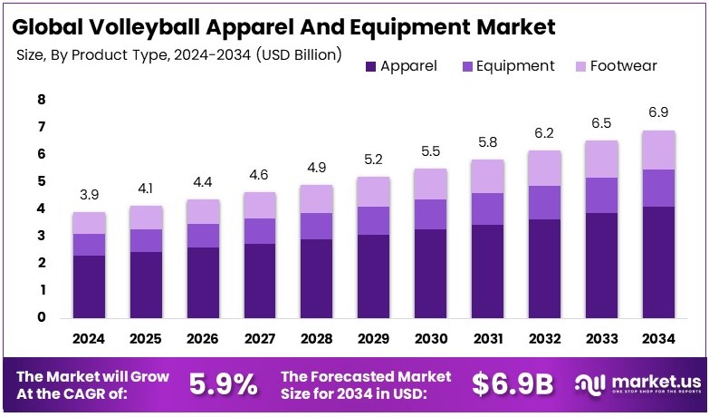 According to a report by Market.us, the Global Volleyball Apparel and Equipment Market is projected to grow significantly, expanding from USD 3.9 Billion in 2024 to an estimated USD 6.9 Billion by 2034. This growth is driven by a steady Compound Annual Growth Rate (CAGR) of 5.9% over the forecast period from 2025 to 2034.