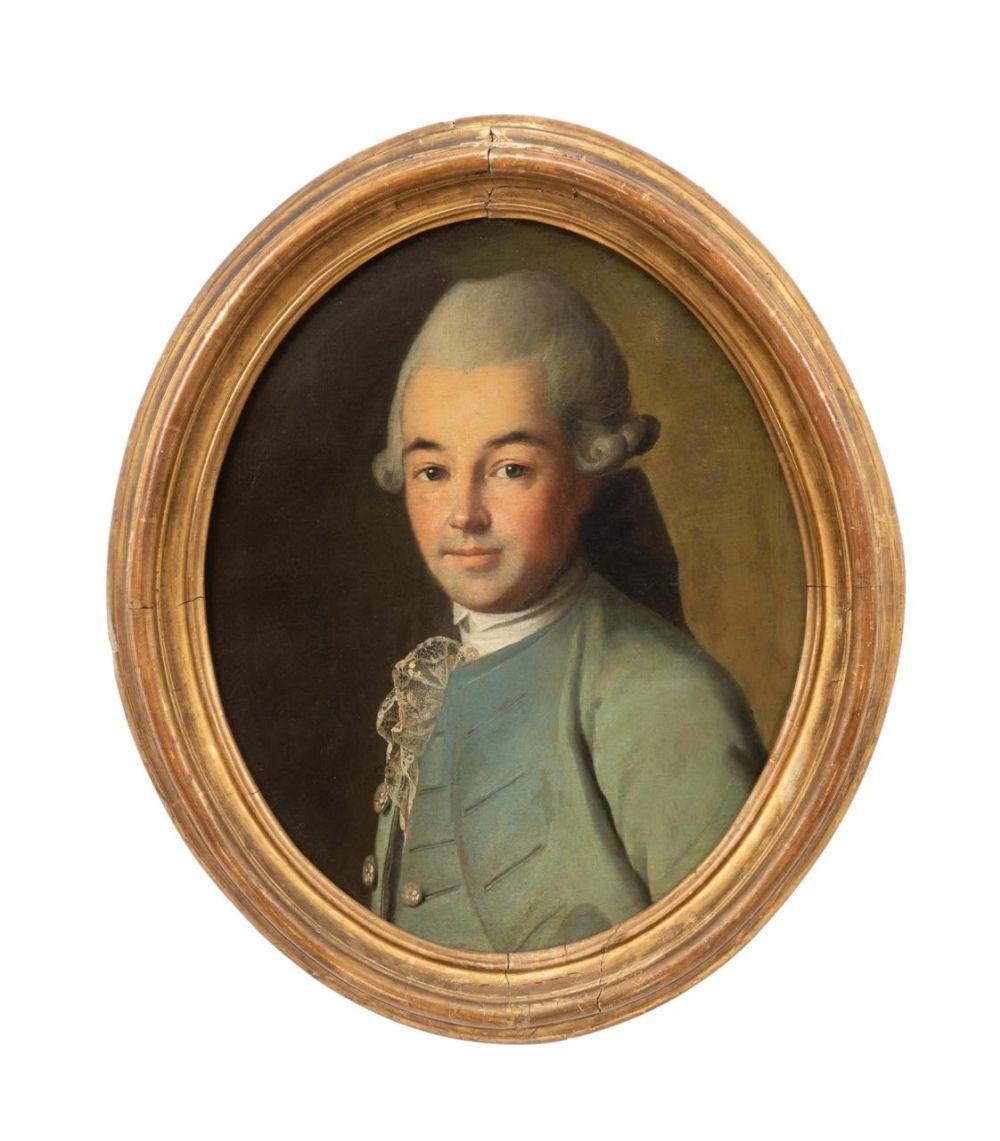 Late 18th/early 19th century French School oil on canvas painting, titled simply Portrait of a Young Man, a bust portrait, apparently unsigned, 23 inches by 19 inches (canvas, minus frame) ($9,680).