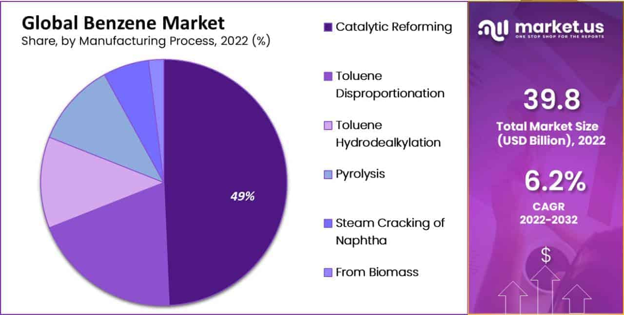 Market.us proffers a complete understanding of the Benzene Market [Snapshot - Global Market Size, Largest Segment, Fastest Growth, and Growth Rate in 6.2%] in its latest research report. It also offers a detailed analysis of the global Benzene market that considers market dynamics such as segmentation, geographic expansion, competitive environment, and many other key elements. The Benzene Market data reports also provide a 3-year pre-historic forecast (up to 2032) for the sector and include data on socio-economic data of global.