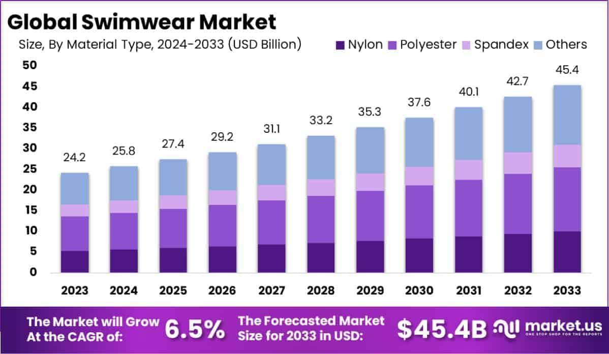 Swimwear Market Size & Share to Reach USD 45.4 Billion by 2033, Growing at a CAGR of 6.5%
