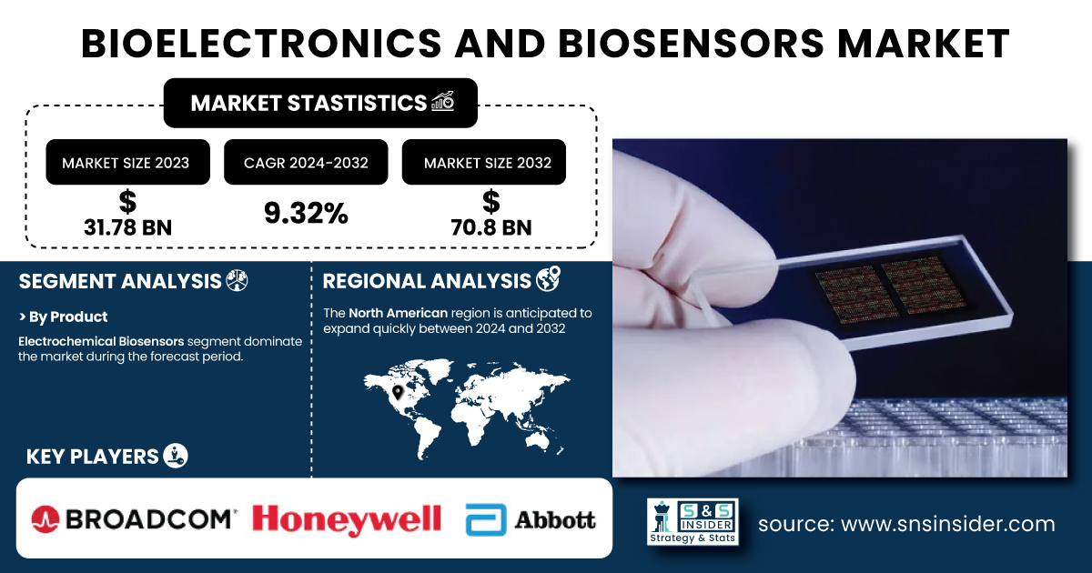 AUSTIN, TX, UNITED STATES, January 29, 2025 /EINPresswire.com/ -- Market Size & Industry InsightsAccording to the SNS Insider Report,“The Bioelectronics and Biosensors Market size was USD 31.78 Billion in 2023 and is expected to reach USD 70.8 Billion by 2032, growing at a CAGR of 9.32% over the forecast period of 2024-2032.”
